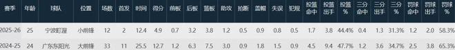 上赛季贝兹利在广东队打球,常规赛出战33场首发11次,场均上阵25.5分钟贡献12.7分7.5板3助1.8帽,三项命中率47.7%、34.7%和65.3%;季后赛场均登场22.4分钟,拿下11.2分7.2板1助1.2帽,三项命中率57.9%、33.3%和72.7%。